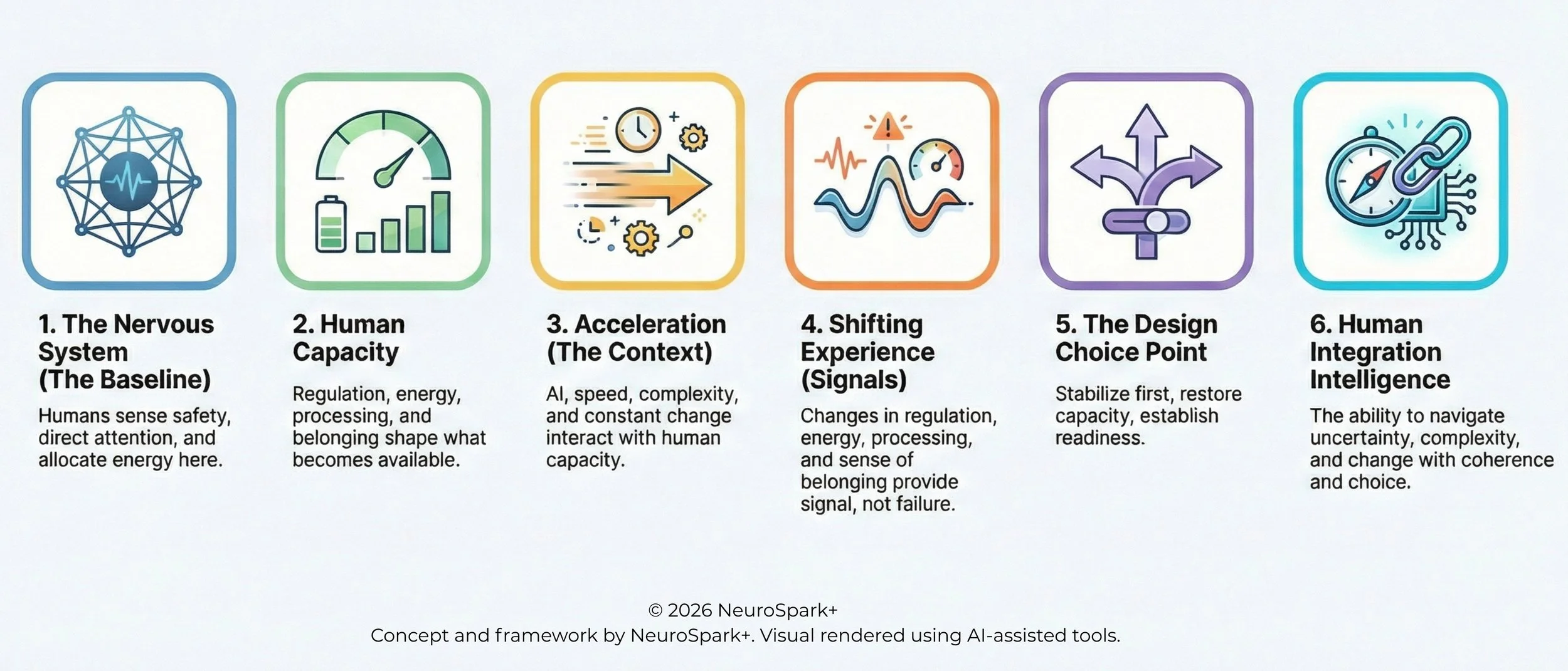This piece applies the NeuroSpark+ lens to what humans are experiencing under acceleration. It builds on the lived origin of this work and translates it into a shared orientation map that can be used by individuals, teams, and systems.